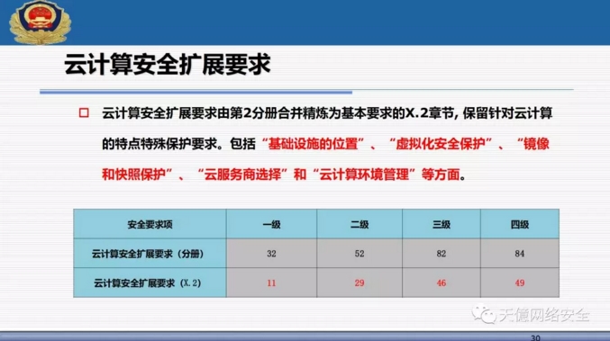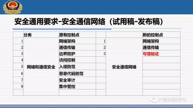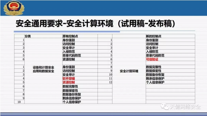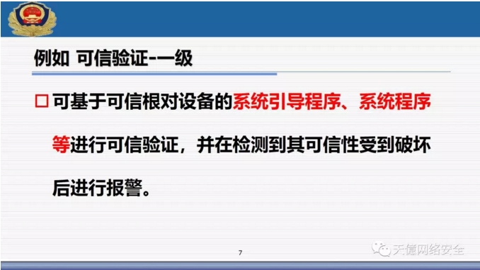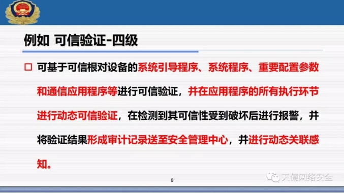 (3)新标准里把可信计算使用写入了标准范围,从一级开始到四级全部提出了可信验证空间。 ?