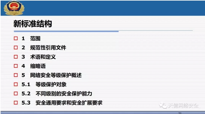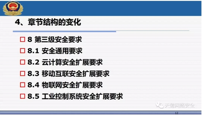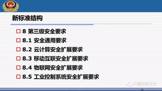 (2)三个核心标准,包括基本要求、设计要求和测评要求,形成了完全统一的架构; ?