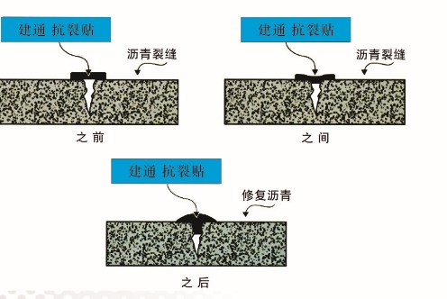 自粘式防裂贴与裂缝结合的过程: